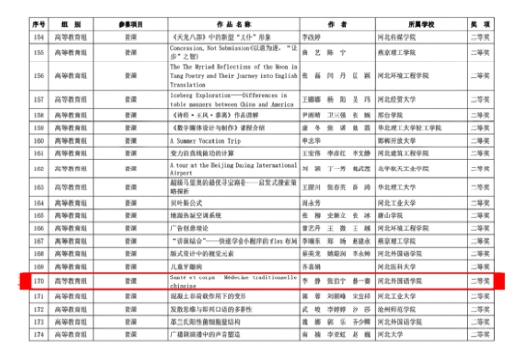 工作引领外语人才培养路径研究》2024年立项;主持校级教改研究项目 1 项《理解当代中国﹣法语演讲教程》课程建设研究;主持2024年河北省教育厅青年基金课题一项《中国优秀传统文化特色术语翻译与传播研究》。