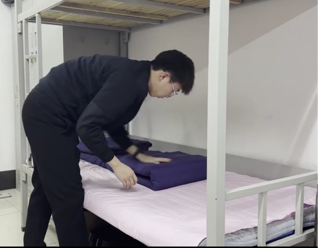 活动当天,同学们来到各自宿舍集合,根据内务整理的技巧与规范示例。在宿舍长的组织下,有条不紊地开始内务整理与安全排查活动。