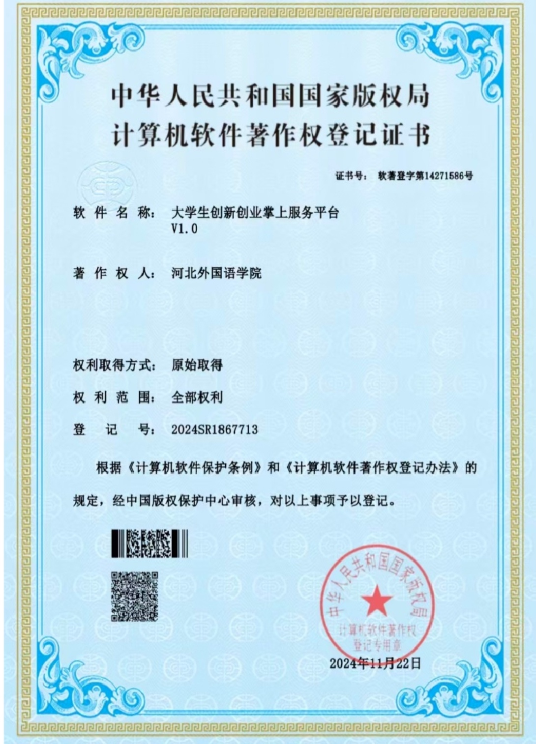 此外,周彩霞老师团队还取得了“大学生创新创业掌上服务平台”的计算机软件著作权,该平台致力于为学生创新创业提供便捷高效的数字化服务,是教育信息化实践中的重要成果之一。