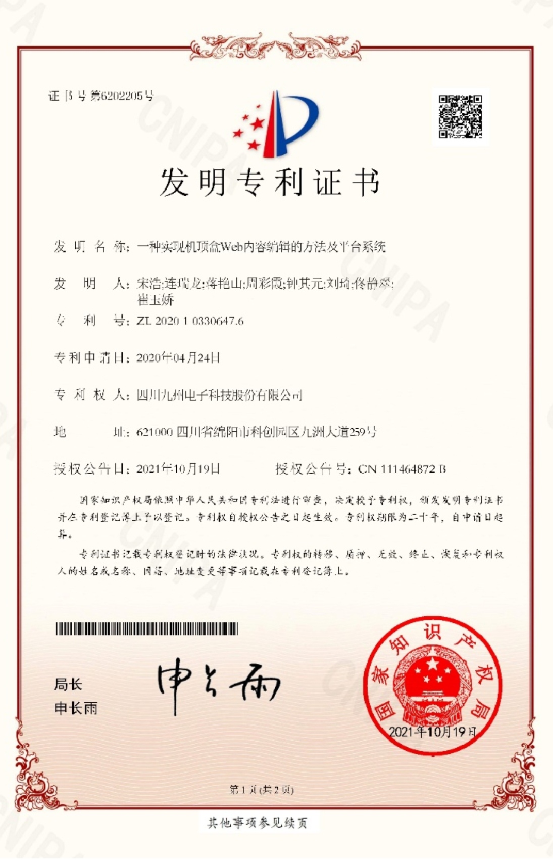其中,她作为主要负责人研发的一种实现“机顶盒Web内容编辑的方法及平台系统”,在信息技术与数字媒体交叉领域展现出显著创新价值。