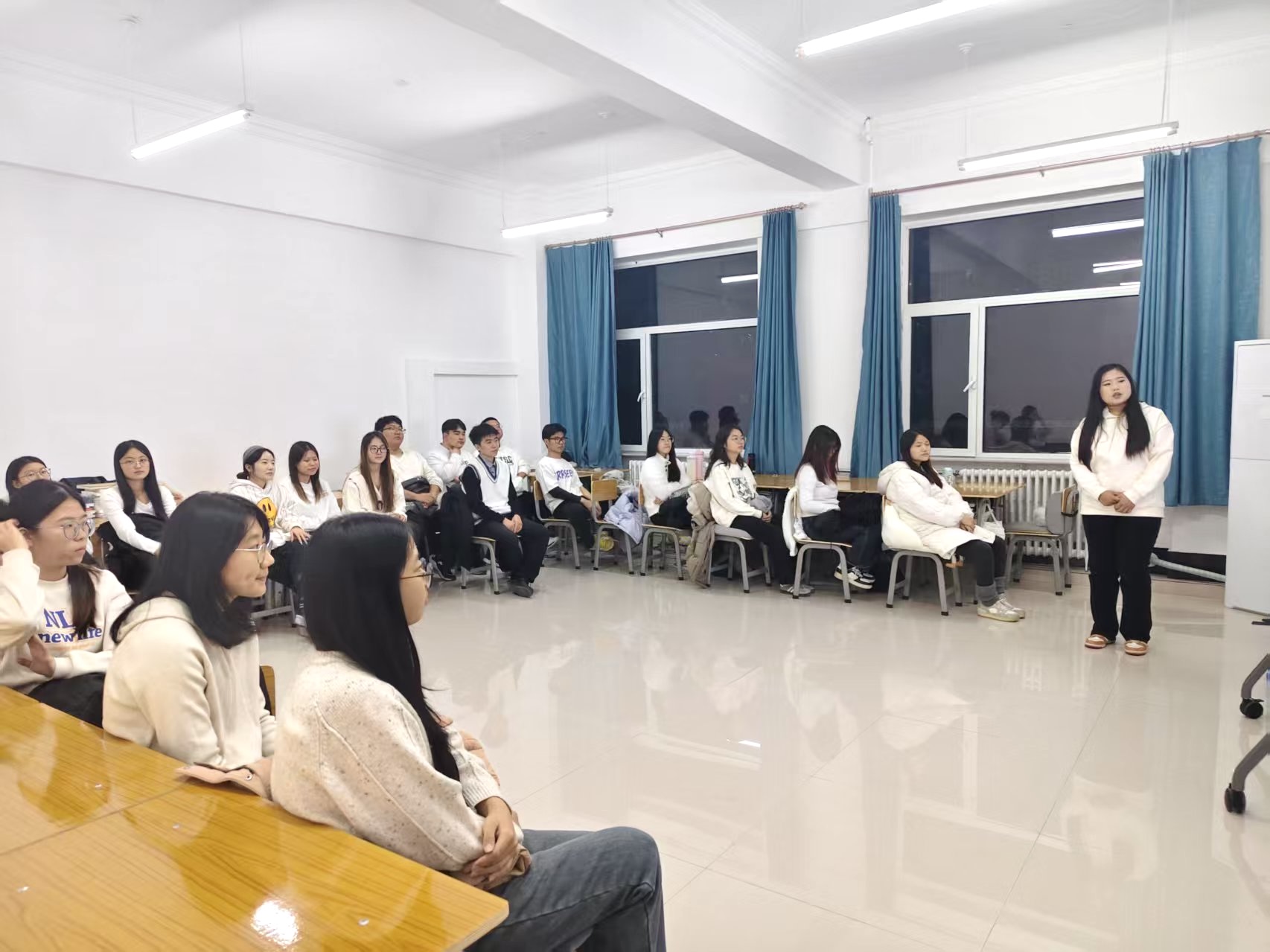 11月23日,河北外国语学院德法语言学院开展党团主题教育课。课前,同学们在团支书带领下认真打扫班级卫生,营造整洁有序的学习环境,为团课顺利开展做好充分准备。本次团课聚焦五大核心主题,分别是安全教育专题、树立正确就业观专题、大学生素质能力提升专题、人人建立道德账户专题和生态文明教育专题。