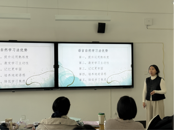 比赛现场,教师们各展其能,精彩纷呈。在方法阐述环节,大家结合自身教学实践,分享了对于语言自然学习法的独到见解。并且,教师们以语言自然学习法为核心,综合运用其他教学方法,进行现场教学展示。整个赛场气氛活跃,充满了教学智慧与创新活力。