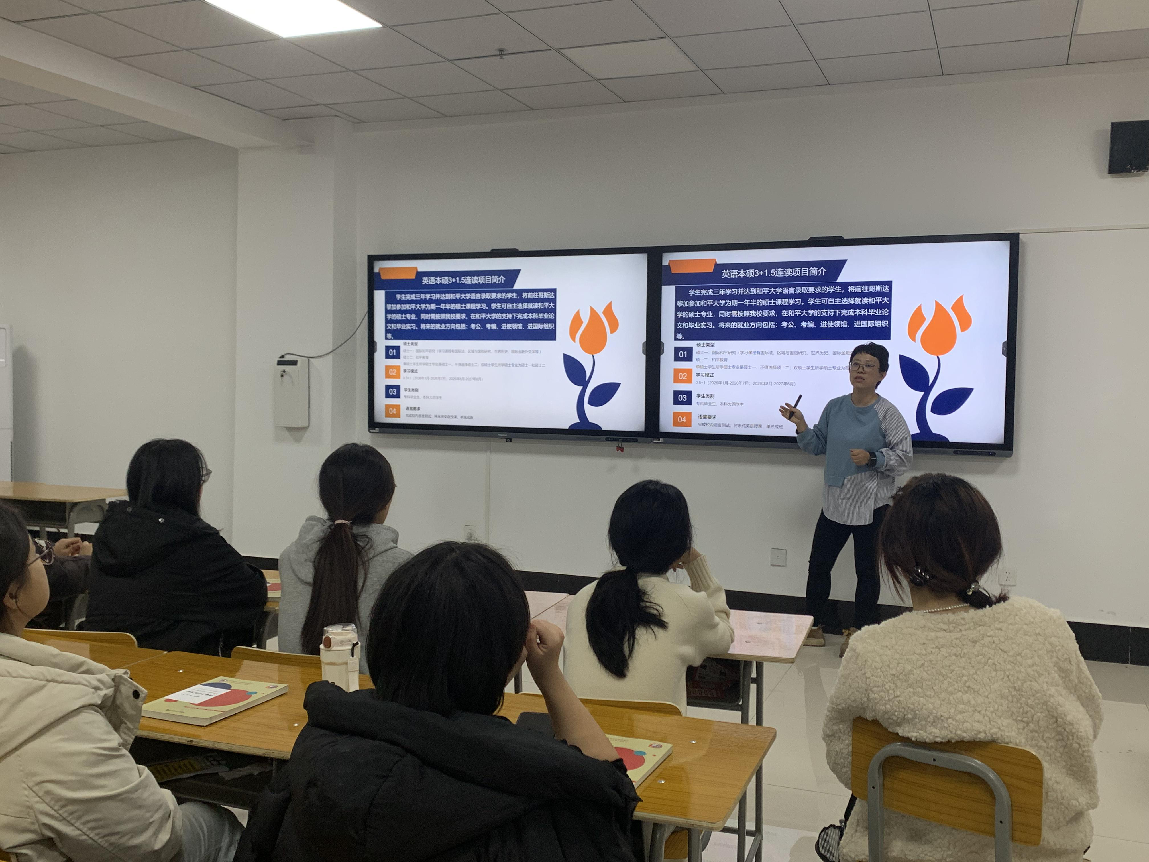 本次宣讲会不仅加深了学生对联合国和平大学及其英语本硕连读项目的认知,也为他们规划个人国际化成长道路提供了重要参考。学院将进一步推进与联合国和平大学等多边教育机构的交流协作,致力于培养具有全球格局、学术素养与跨文化沟通能力的复合型人才。